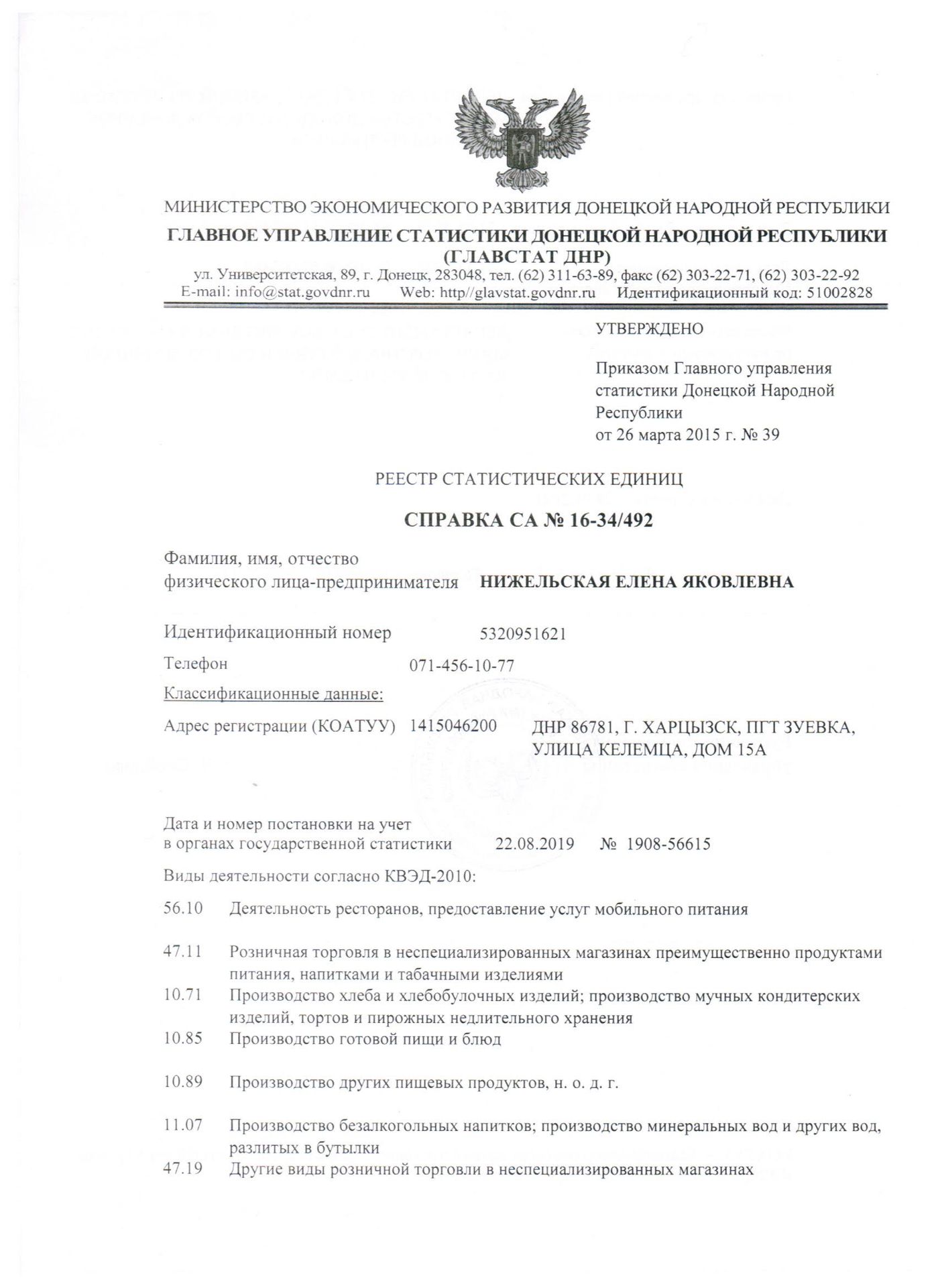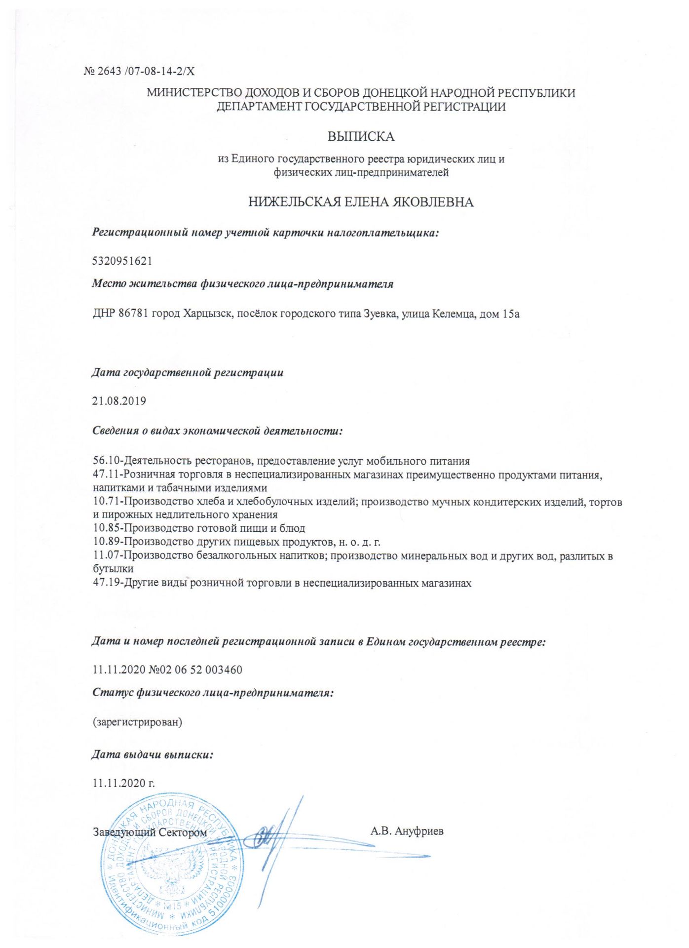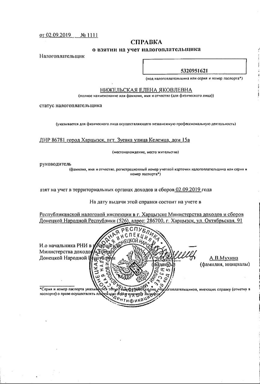 Уставные документы ФЛП Нижельская Е.Я.